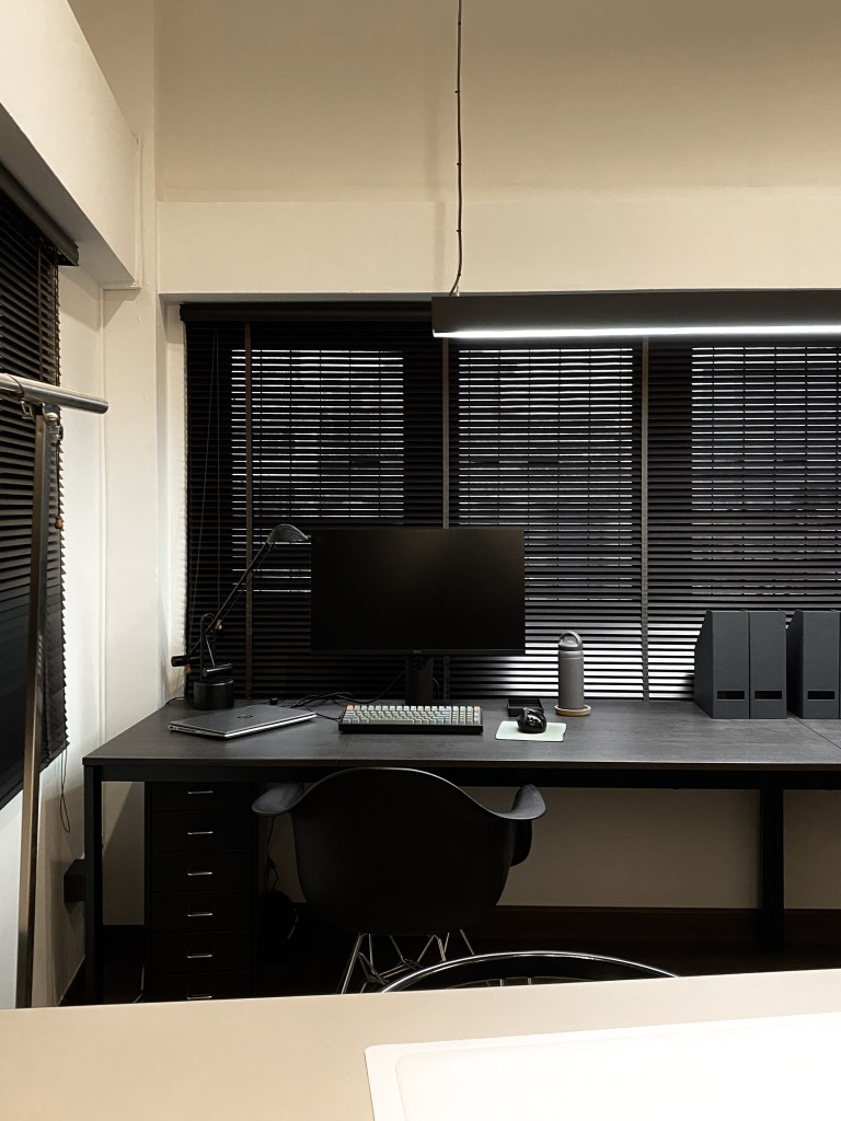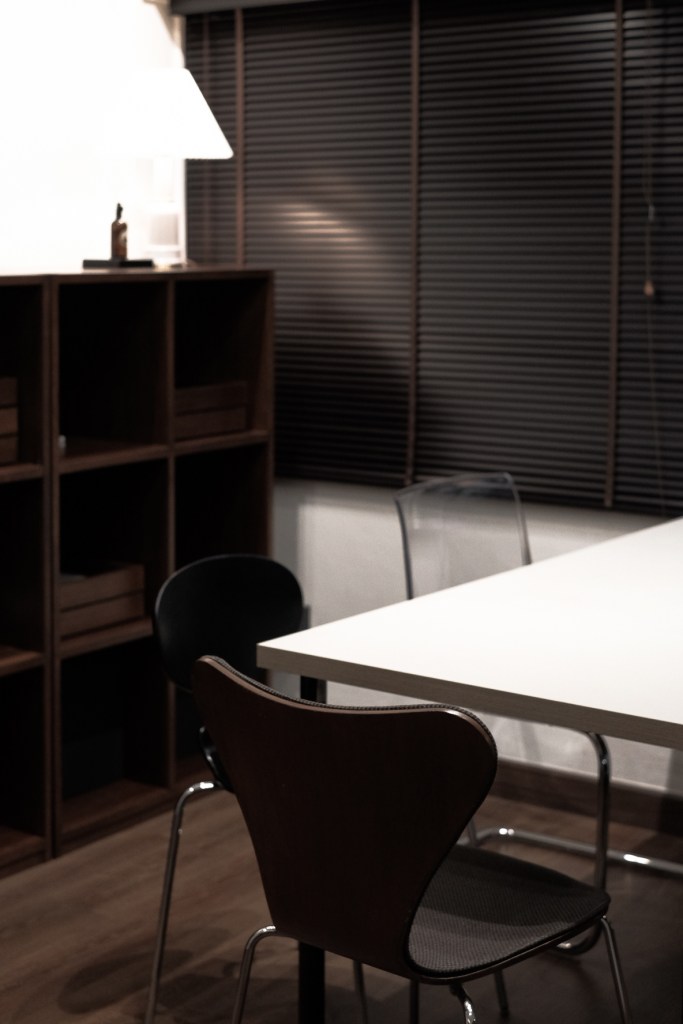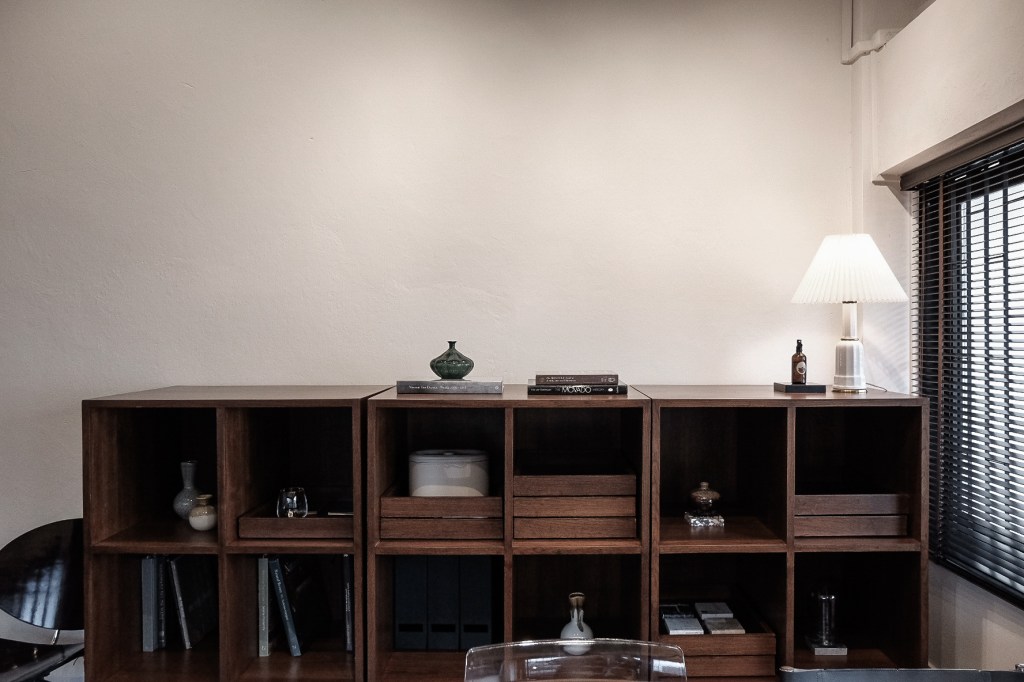 BBWORKSPACE Studios is located on the 3rd floor of an old building which was originally used as a storage room. With an area of approximately 25 square meters, we have renovated from a 30 year old storage room into our workspace in a simple, cool style, emphasizing lines and space that is modern, open, clean, making the space conducive. to the creation of creativity and we want it to be a space that gives a feeling of peace and tranquility in order to concentrate on working therefore choose furniture and the floor in dark tones (Dark Oak Wood). The walls and ceiling are painted off-white so that the overall picture of the room is not too dark.