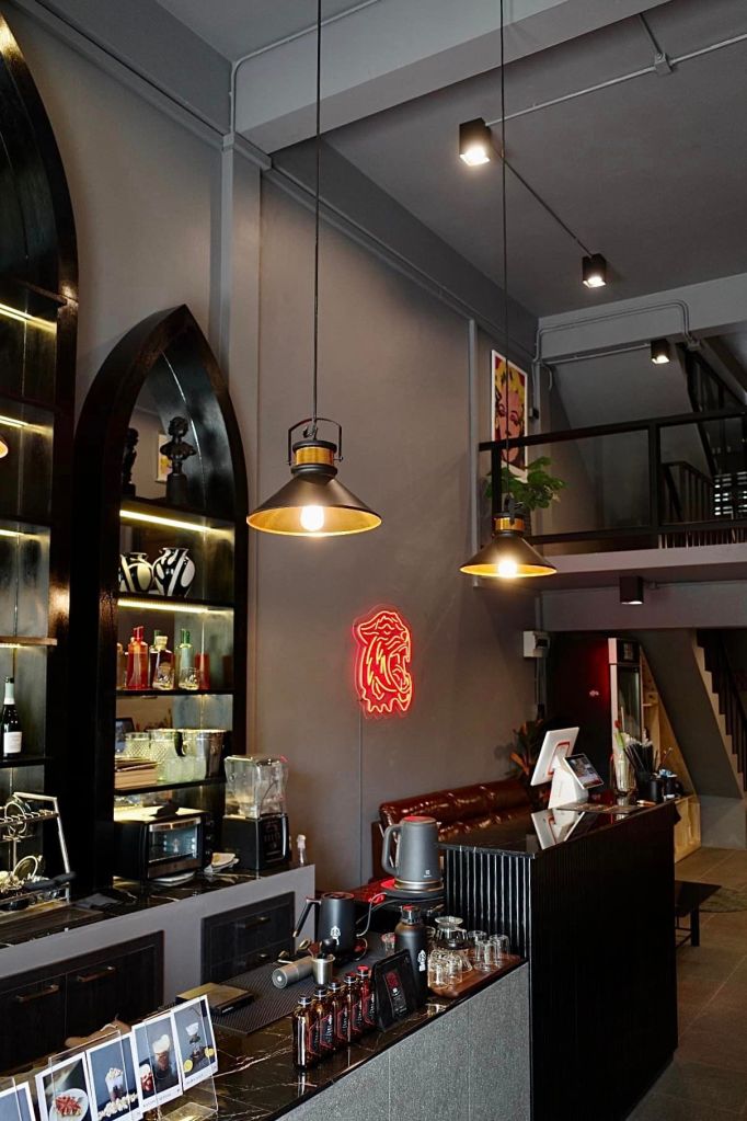 Suea is a small cafe in the Chiang Mai Railway Station area. The idea is to improve the second floor of the shop to become Co-working space decorated in Cozy Artist style that the owner is an artist who has a dark tone and likes black tones. So I try to match the colors to look perfect according to the location and the owner’s needs, along with the various collectible prop placed inside. It is a unique work of art. Unique, thus making the Space look dimensional and interesting.