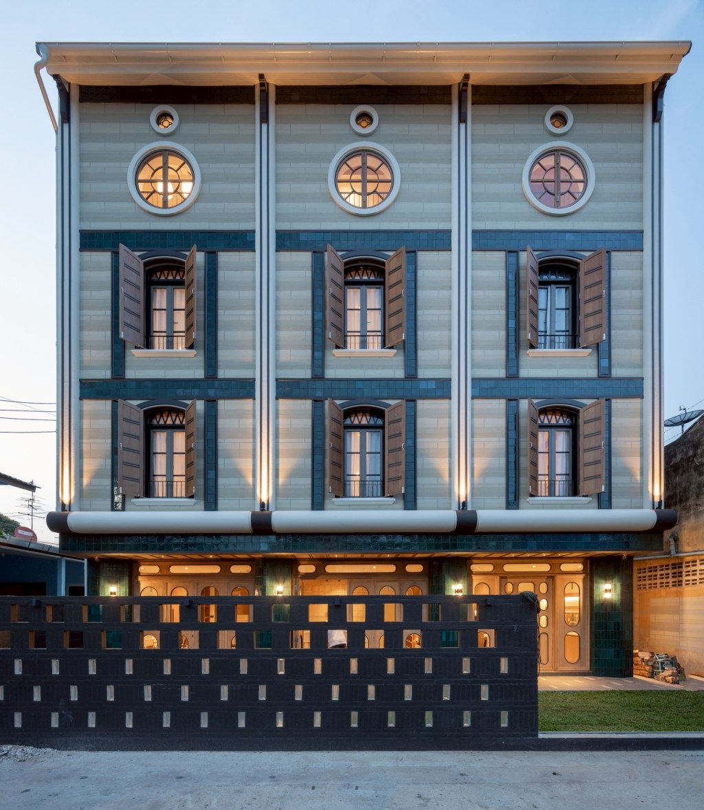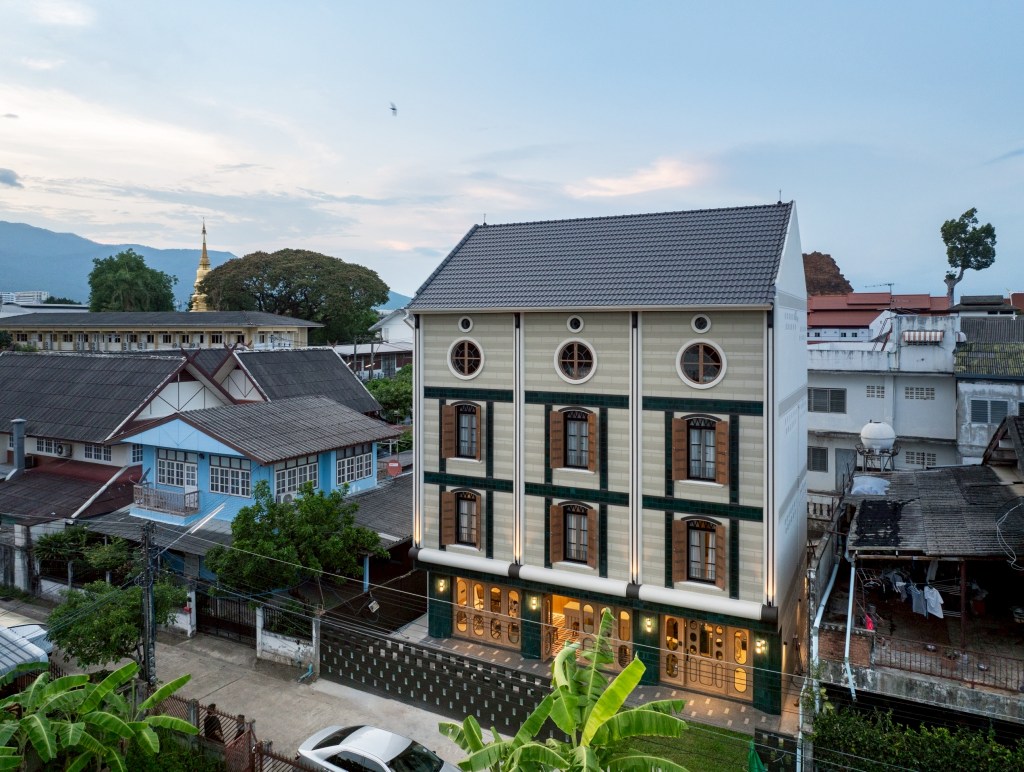 Elements such as symmetrical composition, vertical proportions, and arched openings—commonly found in colonial architecture—are reinterpreted through a contemporary lens and expressed with Lanna-influenced materiality.